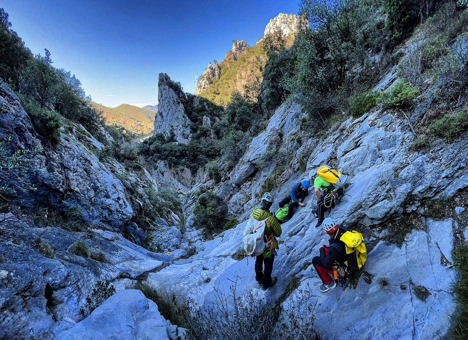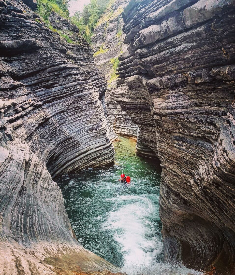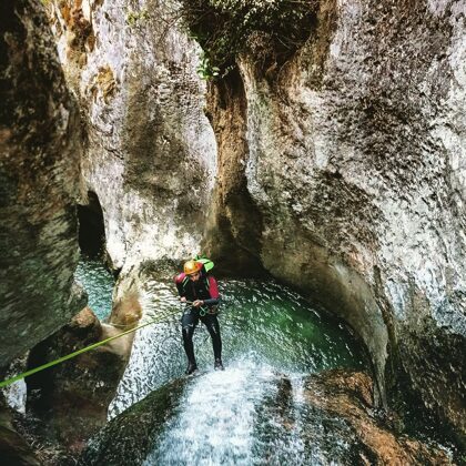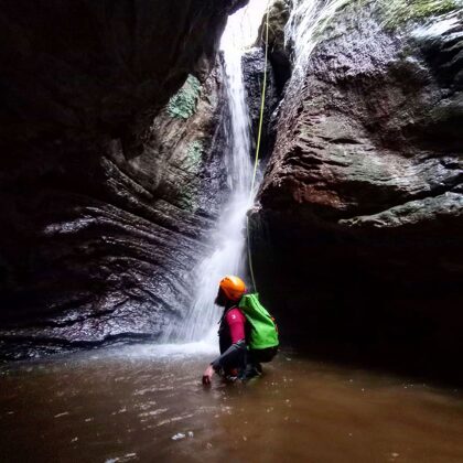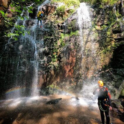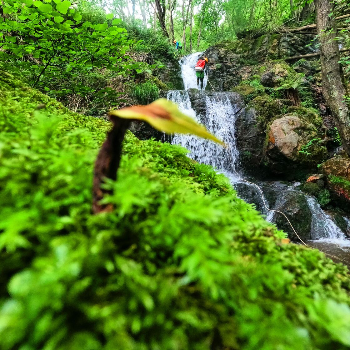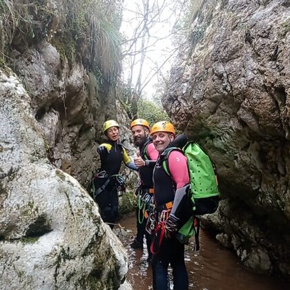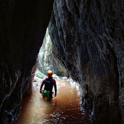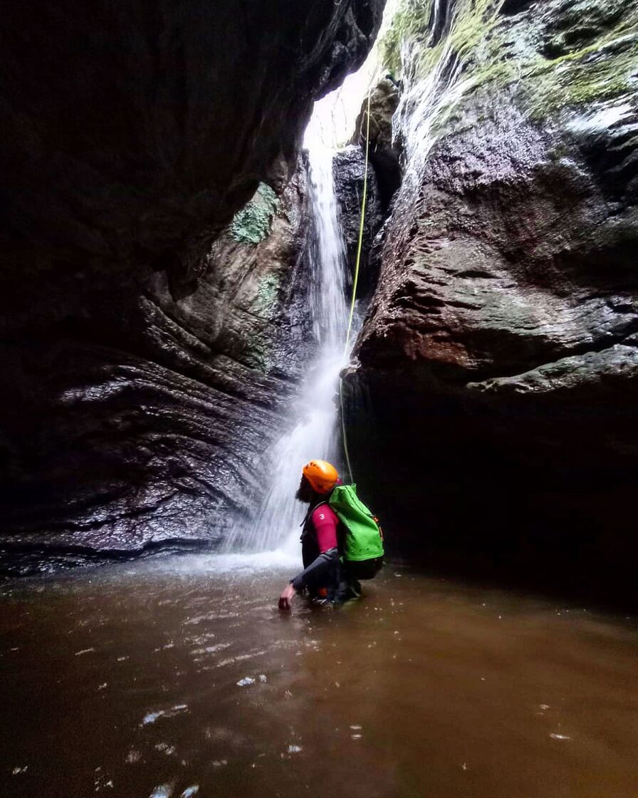 INTERMEDIOS NIVEL 2 (60 Euros/PAX): Se requiere experiencia previa o al menos estar habituados a la práctica de rutas por montaña de varias horas y saber nadar. Aparecen las cascadas en las que única forma de progresar es a través de un rapel, por lo que el no tener miedo al sentir el vacío debería estar interiorizado y asimilado.